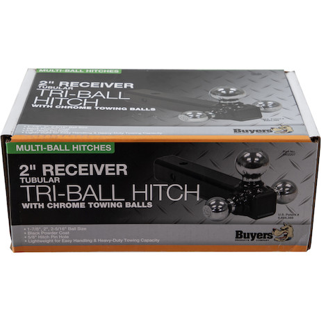 The Tri-Ball Hitch with Chrome Towing Balls from Buyers Products is an all-in-one, time-saving solution to handling different ball sizes and weight requirements.