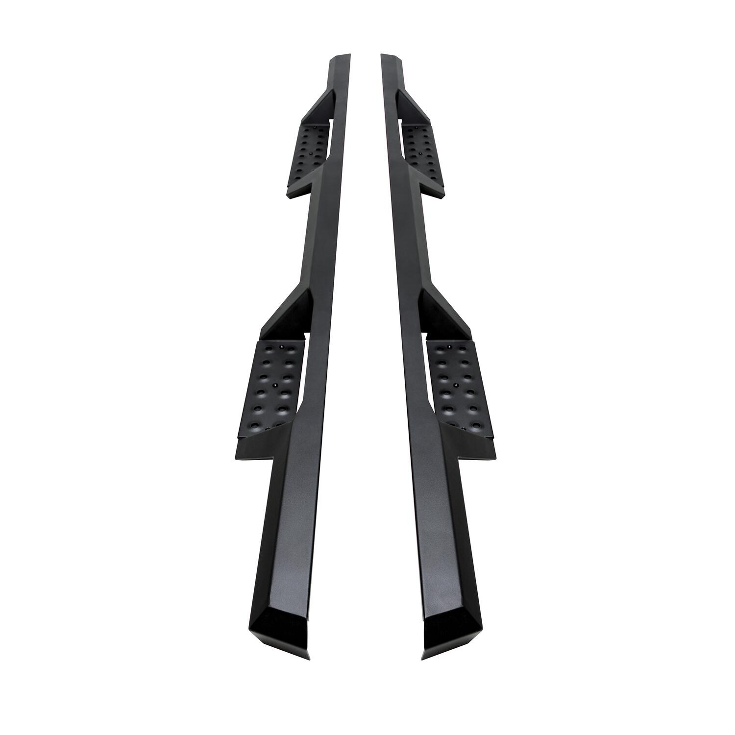 Westins HDX Drop Nerf Step Bars provide the rugged look and function that truck owners need and want. They feature a solid 1-piece steel construction and heavy duty punch plates creating high traction step areas. The HDX Drop Nerf Step Bars also feature Westins notched bar design which provides more than 2in. of additional toe/heel placement versus competitive brands. Available in a textured black finish that complements Westin HDX Bumpers. The HDX Drop Steps have vehicle specific applications and include a vehicle specific mount kit, installation hardware and instructions.