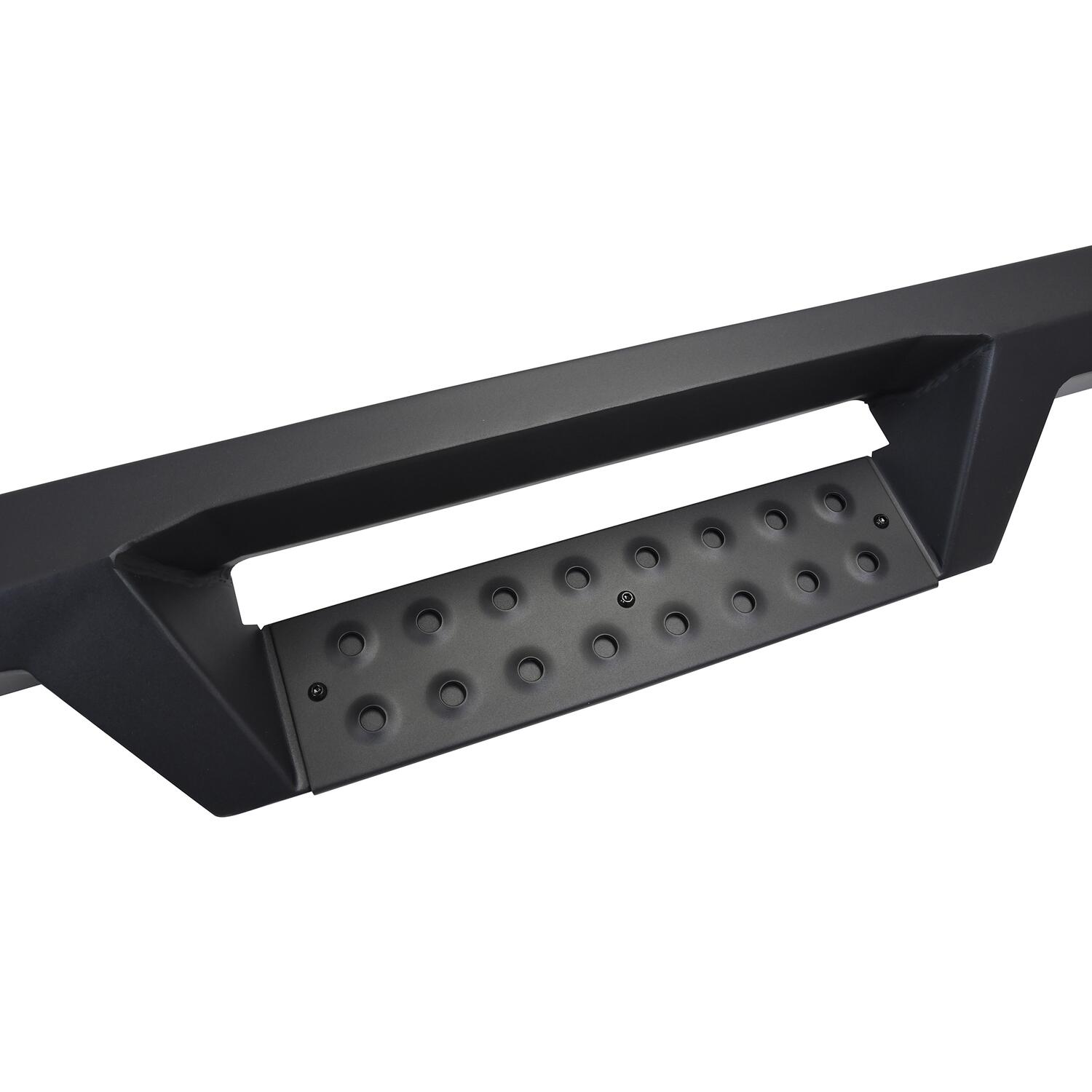 Westins HDX Drop Nerf Step Bars provide the rugged look and function that truck owners need and want. They feature a solid 1-piece steel construction and heavy duty punch plates creating high traction step areas. The HDX Drop Nerf Step Bars also feature Westins notched bar design which provides more than 2in. of additional toe/heel placement versus competitive brands. Available in a textured black finish that complements Westin HDX Bumpers. The HDX Drop Steps have vehicle specific applications and include a vehicle specific mount kit, installation hardware and instructions.