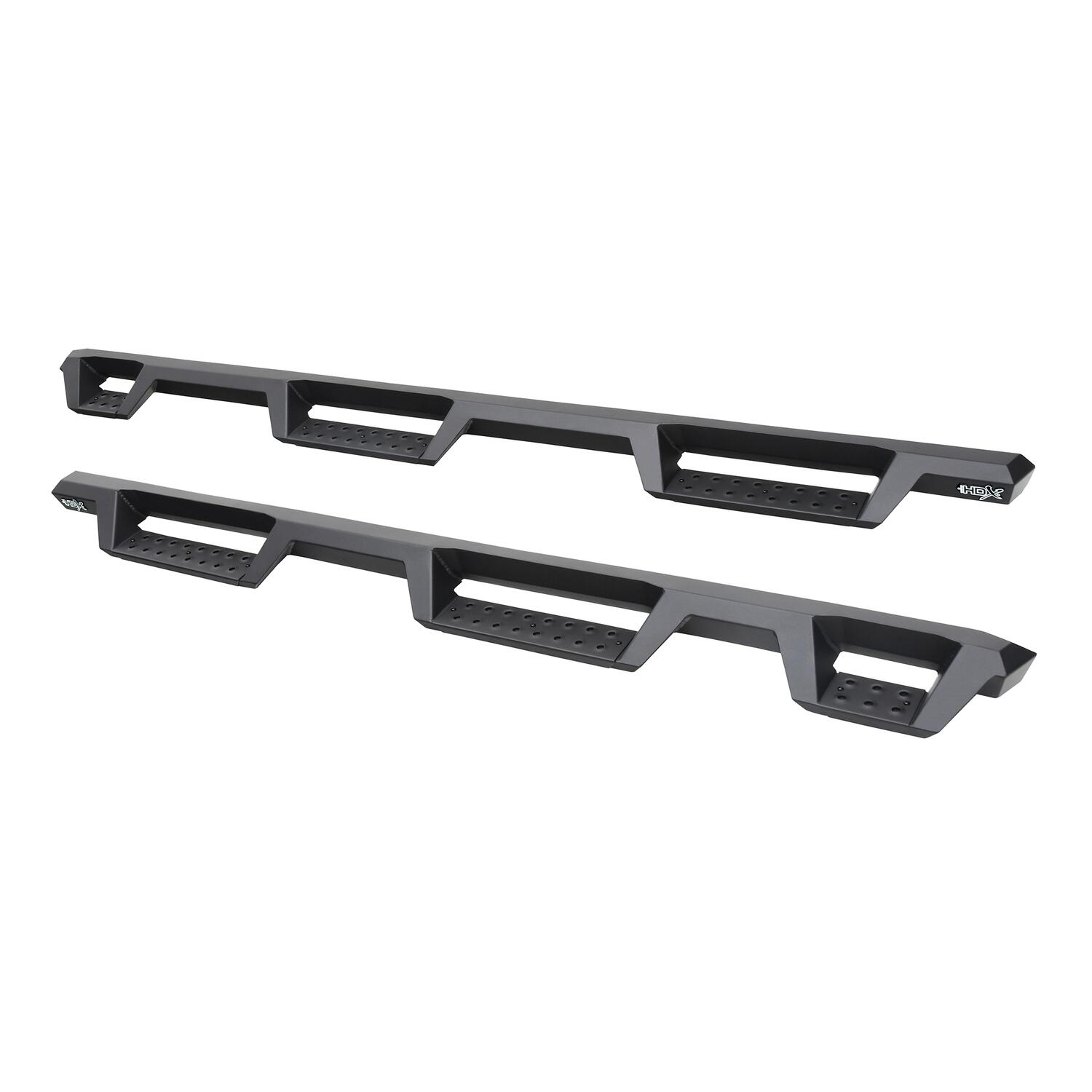 Westins HDX Drop Wheel-to-Wheel Nerf Step Bars feature a notched bar design with a 3rd step location for easy bed access. They provide strong traction with over 2 inches more of toe/heel step area than our Westin's HDX Drop W2W Nerf Step Bars include an added 3rd step location for easier bed area and cargo access. HDX also boasts more than 2 inches of added toe/heel step area which far exceeds all other competitive brands. HDX's notched bar design construction results in a reliable long lasting Bar, with a solid fit and a rugged look. The added length of HDX Drop Wheel-to-wheel Nerf Step Bars provides users with better cab access and better footing and traction for both drivers and passengers. Product includes mount kit and is offered in a variety of vehicle specific applications. Bolt-on installation so no drilling required. Mount kit included. Westin's exclusive Isolator Bracket supports the step bar past the truck cab, a feature that competitors do not offer. Without an Isolator Bracket, the step area that extends past the vehicle is left unsupported. Our unique design provides extra bed support without resulting in annoying creaking sounds.