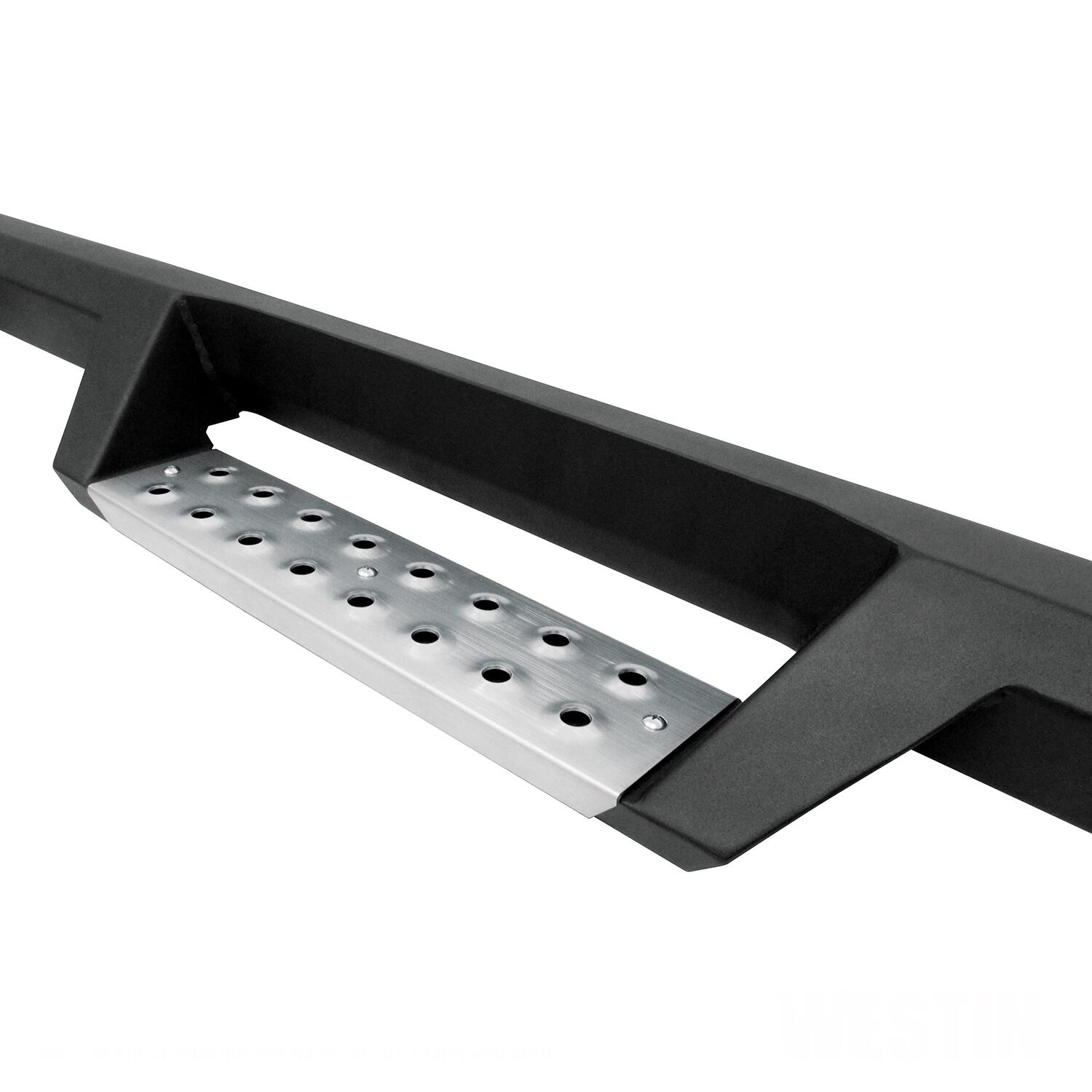 Westin's HDX Stainless Drop Nerf Step Bars are built with corrosion-resistant, textured black painted stainless steel designed to last under the toughest of conditions. With 1-piece construction, these nerf step bars provide over 2 added inches of toe/heel step area than our competitors and fit tight to the vehicle's rocker panel for a solid fit and rugged look. HDX Stainless Drop Nerf Step Bars include stainless steel step pads. Step plates are rust resistant and provide maximum traction. Bolt-on installation with no drilling is required. Includes mount kit.