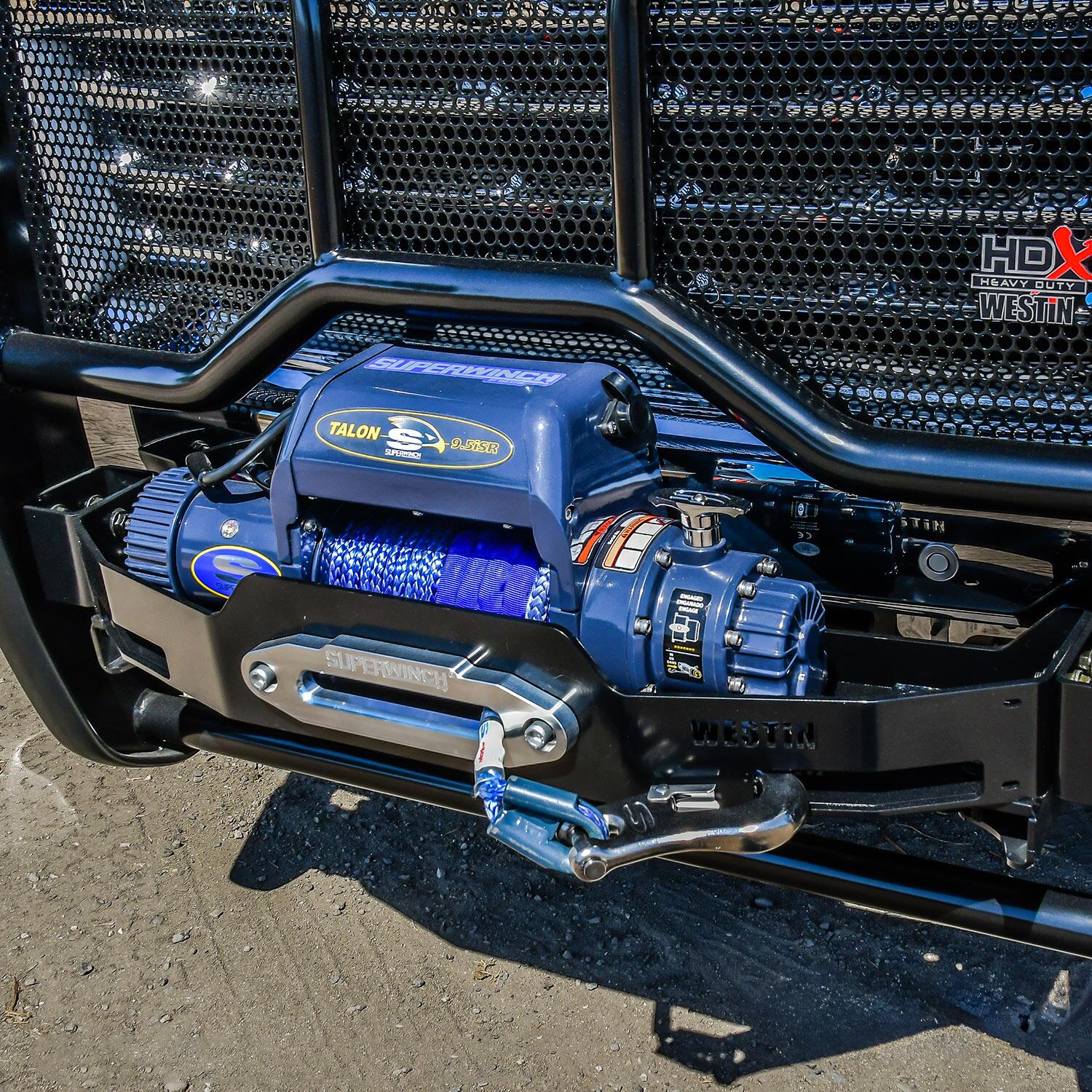 Westin's HDX Winch Mount Grille Guard is extreme truck gear for the enthusiast that seeks additional functionality for their truck. It encompasses all of the features of an HDX Grille Guard with the additional capability to hold a winch up to 10.25 inches tall with a rating of up to 12,000 lbs. Winch trays are tested and capability confirmed to a minimum straight line pull of 16,500 lbs. HDX Winch Mount Grille Guards are available in 304 stainless steel backed by a lifetime warranty and black powder coat steel backed by a 3 year warranty.