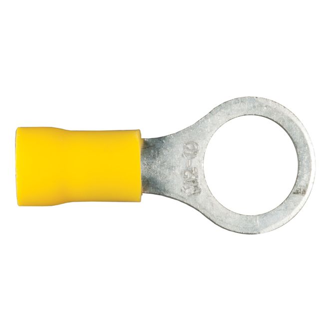 CURT 59531 12-10 Gauge Yellow Vinyl-Insulated Ring Terminal Wire Connectors, #10 Stud, 100-Pack